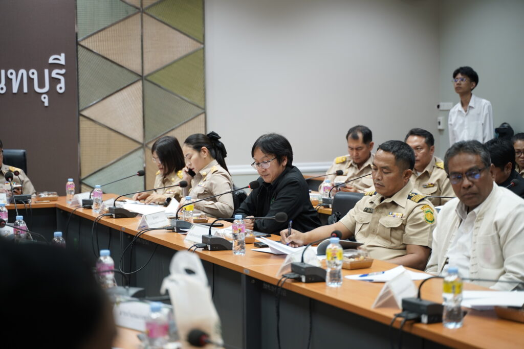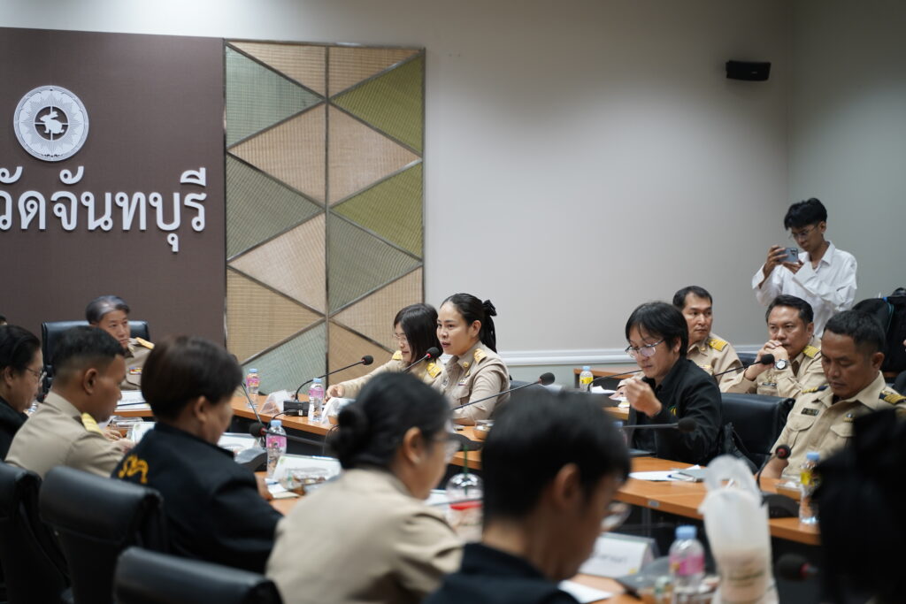 ในการประชุม สำนักงานเกษตรจังหวัดจันทบุรี โดยนางสาวจารุวรรณ ทองใบ เกษตรจังหวัดจันทบุรี ได้นำเสนอภาพรวมสถานการณ์การผลิตทุเรียนของจังหวัด ซึ่งมีแนวโน้มเพิ่มขึ้นอย่างต่อเนื่องทั้งด้านพื้นที่ปลูก พื้นที่ให้ผล และปริมาณผลผลิต แสดงถึงจังหวัดจันทบุรีในฐานะแหล่งผลิตทุเรียนหลักของประเทศ ขณะเดียวกัน ที่ประชุมได้ตระหนักถึงความท้าทายด้านคุณภาพ มาตรฐาน และข้อกำหนดของประเทศคู่ค้า โดยเฉพาะประเด็นความปลอดภัยด้านสารตกค้างและโลหะหนัก และร่วมกันทบทวนผลการดำเนินงานตามมาตรการควบคุมและป้องกันทุเรียนด้อยคุณภาพในฤดูกาลผลิตที่ผ่านมา ซึ่งจังหวัดจันทบุรีได้ขับเคลื่อนมาตรการอย่างครบวงจร ตั้งแต่การพัฒนาศักยภาพนักคัด–นักตัดทุเรียน การควบคุมคุณภาพผลผลิตในระดับสวนเกษตรกร การกำกับดูแลโรงคัดบรรจุเพื่อการส่งออก การควบคุมตลาดภายในประเทศ ตลอดจนการดำเนินกิจกรรมยกระดับมาตรฐานการผลิตให้สอดคล้องกับความต้องการของประเทศคู่ค้า