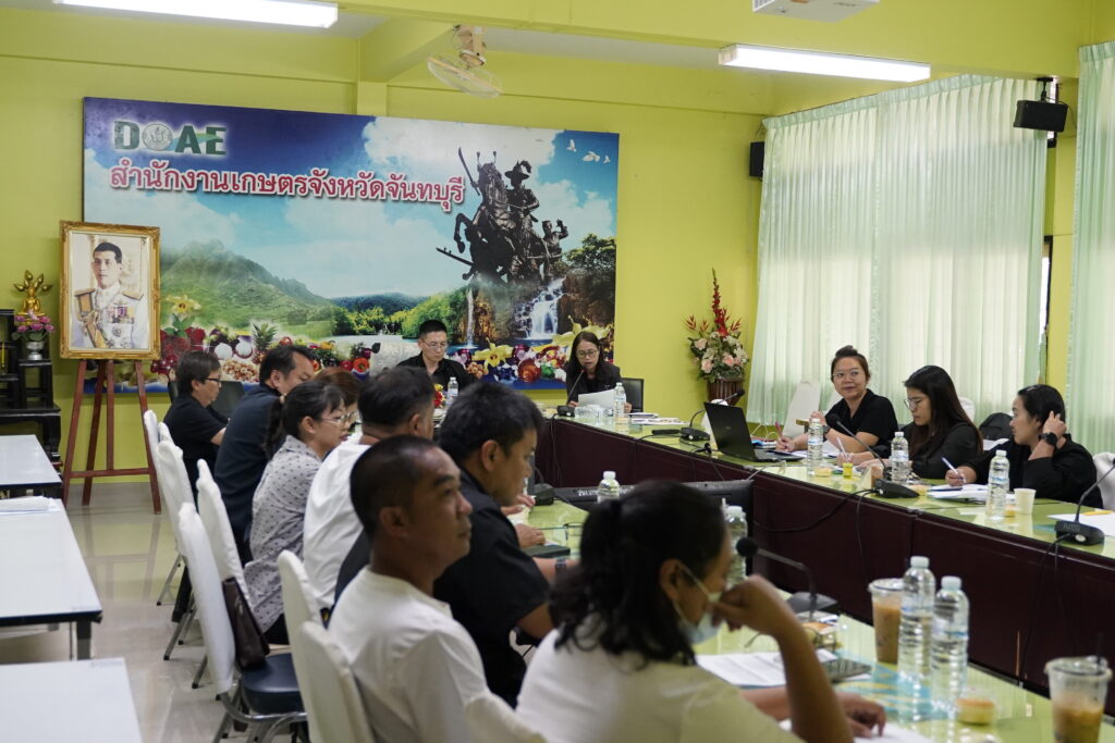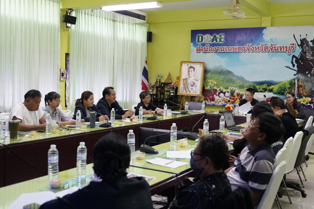 วันศุกร์ที่ 12 ธันวาคม พ.ศ. 2568 สำนักงานเกษตรจังหวัดจันทบุรี โดยนางสาวเสาวคนธ์ นุสติ หัวหน้ากลุ่มยุทธศาสตร์และสารสนเทศ พร้อมด้วยเจ้าหน้าที่กลุ่มยุทธศาสตร์และสารสนเทศ จัดประชุมเครือข่ายแปลงใหญ่มังคุดจังหวัดจันทบุรี เพื่อร่วมกันกำหนดแนวทางการวางแผนขับเคลื่อนการบริหารจัดการเครือข่ายแปลงใหญ่มังคุด สำหรับปีการผลิต 2569 ณ ห้องประชุมสำนักงานเกษตรจังหวัดจันทบุรี อำเภอเมืองจันทบุรี จังหวัดจันทบุรี มุ่งเน้นการเสริมสร้างความเข้มแข็งของเครือข่ายแปลงใหญ่มังคุดในแต่ละพื้นที่ ผ่านการบูรณาการการดำเนินงานด้านการผลิต การพัฒนาคุณภาพผลผลิต และการเพิ่มศักยภาพด้านการตลาด รวมถึงการเชื่อมโยงเครือข่ายระหว่างกลุ่มแปลงใหญ่ เพื่อให้เกิดการแลกเปลี่ยนข้อมูลข่าวสาร การจัดกิจกรรมร่วมกัน และการบริหารจัดการกลุ่มอย่างเป็นระบบ รองรับสถานการณ์การผลิตและการตลาดมังคุดในฤดูกาลผลิตที่จะมาถึง