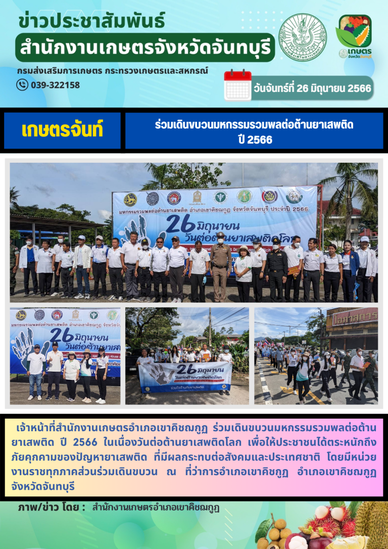 เกษตรเขาคิชฌกูฏ เกษตรเขาคิชฌกูฏ: ร่วมเดินขบวนมหกรรมรวมพลต่อต้านยาเสพติดปี 2566 admin 26 มิถุนายน 2023
