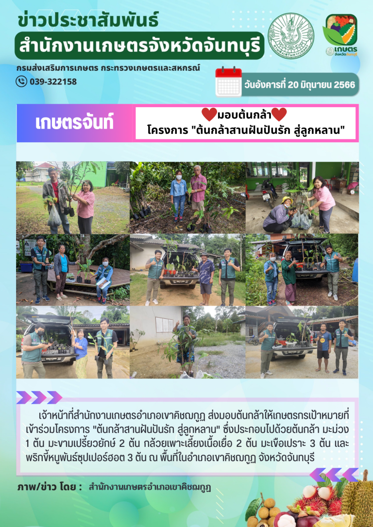 เกษตรเขาคิชฌกูฏ เกษตรเขาคิชฌกูฏ: มอบต้นกล้า โครงการ “ต้นกล้าสานฝันปันรัก สู่ลูกหลาน” admin 20 มิถุนายน 2023