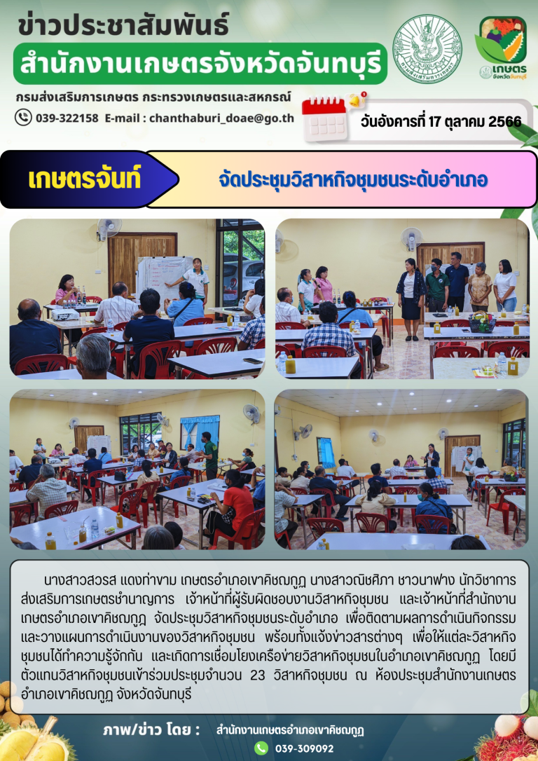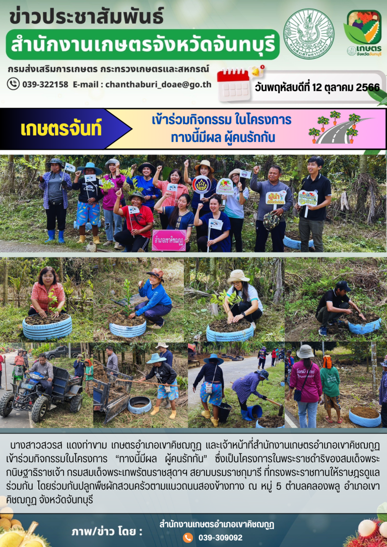 เกษตรเขาคิชฌกูฏ เกษตรเขาคิชฌกูฏ: เข้าร่วมกิจกรรมในโครงการ “ทางนี้มีผล ผู้คนรักกัน” admin 12 ตุลาคม 2023