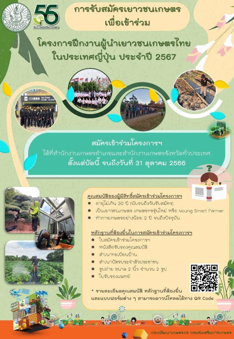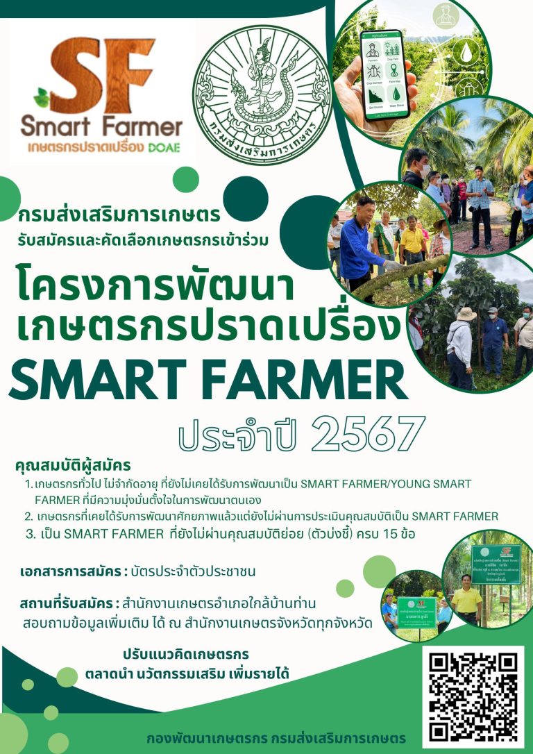 ข่าวประชาสัมพันธ์ รับสมัครแลัคัดเลือกเกษตรกรเข้าร่วมโครการพัฒนาเกษตรกรปราดเปรื่อง SMART FARMER ประจำปี 2567 admin 23 ตุลาคม 2023