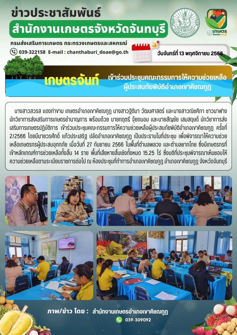 เกษตรเขาคิชฌกูฏ เกษตรเขาคิชฌกูฏ: เข้าร่วมประชุมคณะกรรมการให้ความช่วยเหลือผู้ประสบภัยพิบัติอำเภอเขาคิชฌกูฏ admin 13 พฤศจิกายน 2023