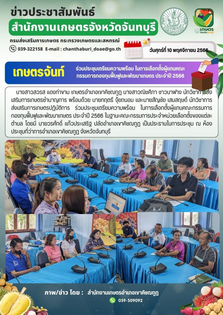 เกษตรเขาคิชฌกูฏ เกษตรเขาคิชฌกูฏ: ร่วมประชุมเตรียมความพร้อม ในการเลือกตั้งผู้แทนคณะกรรมการกองทุนฟื้นฟูและพัฒนาเกษตร ประจำปี 2566 admin 10 พฤศจิกายน 2023