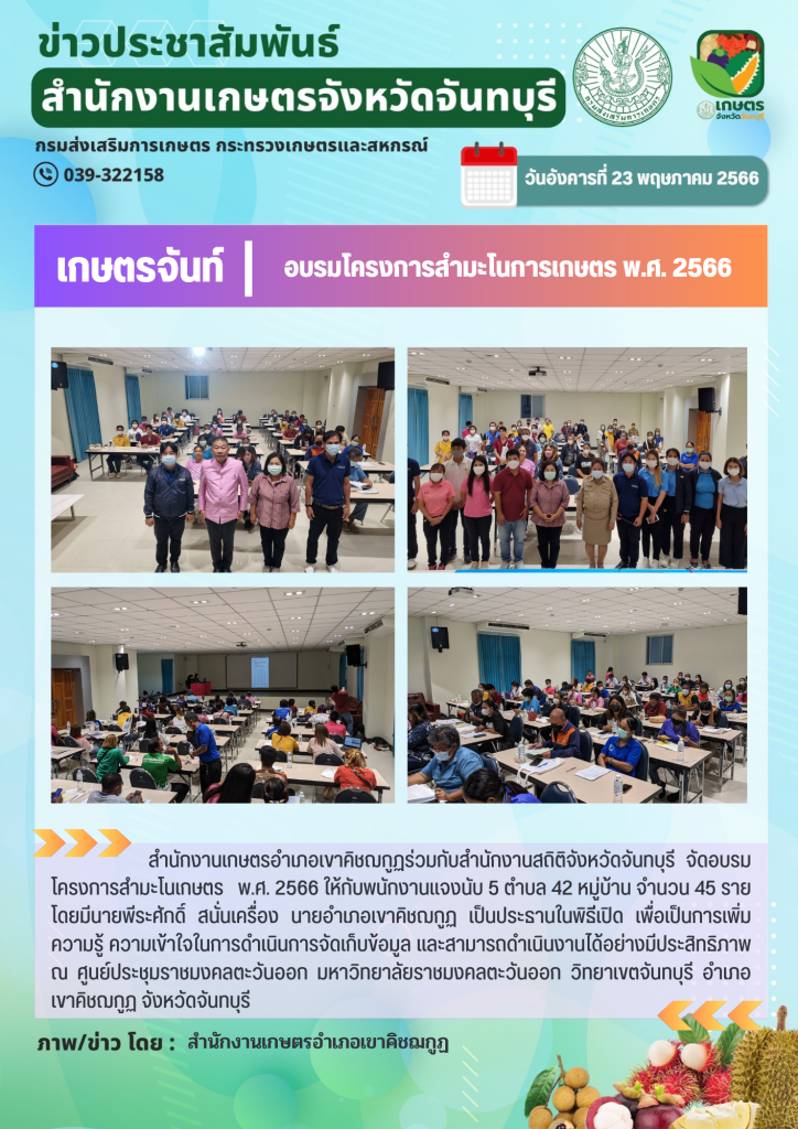 เกษตรเขาคิชฌกูฏ เกษตรเขาคิชฌกูฏ: อบรมโครงการสำมะโนการเกษตร พ.ศ. 2566 admin 23 พฤษภาคม 2023 Continue Reading Previous Previous post: เกษตรเขาคิชฌกูฏ: ฝึกอบรมและสาธิตวิธีการตรวจวิเคราะห์ดินให้แก่นักศึกษาฝึกงานNext Next post: เกษตรเขาคิชฌกูฏ: ลงพื้นที่ติดตามงานโครงการเคหะกิจเกษตรกรสูงวัย
