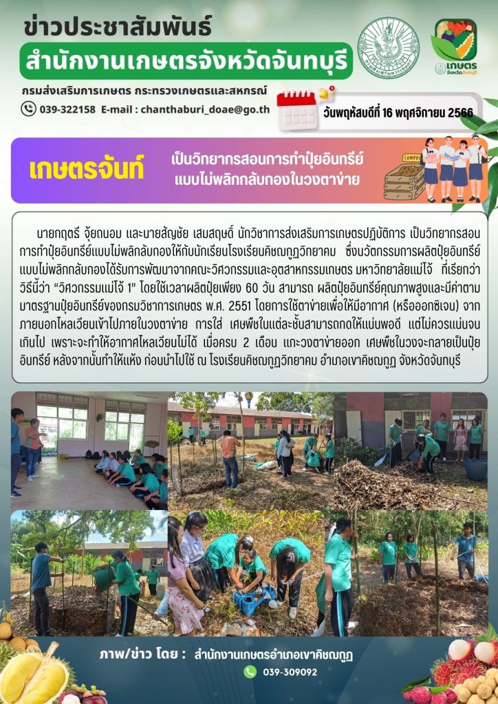 เกษตรเขาคิชฌกูฏ เกษตรเขาคิชฌกูฏ: เป็นวิทยากรสอนการทำปุ๋ยอินทรีย์แบบไม่พลิกกลับกองในวงตาข่าย admin 16 พฤศจิกายน 2023 Continue Reading Previous Previous post: เปิดรับชุมชน และเกษตรกรที่สนใจเข้าร่วมโครงการ 1 ตำบล 1 ดิจิทัล (ชุมชนโดรนใจ)Next Next post: เครื่องหมายรับรองมาตรฐาน “สินค้าเกษตร”