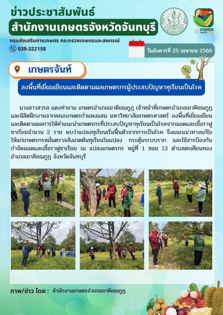 เกษตรเขาคิชฌกูฏ เกษตรเขาคิชฌกูฏ: ลงพื้นที่เยี่ยมเยียนและติดตามผลเกษตรกรผู้ประสบปัญหาทุเรียนเป็นโรค admin 25 เมษายน 2023 Continue Reading Previous Previous post: เกษตรเขาคิชฌกูฏ: ลงพื้นที่เยี่ยมเยียนศูนย์เครือข่าย ศพก.เกษตร เขาคิชฌกูฏNext Next post: เกษตรเขาคิชฌกูฏ: จังหวัดเคลื่อนที่